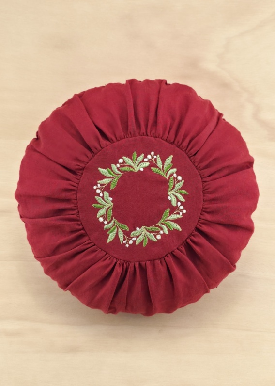 Poduszka lniana okrągła, bordowa